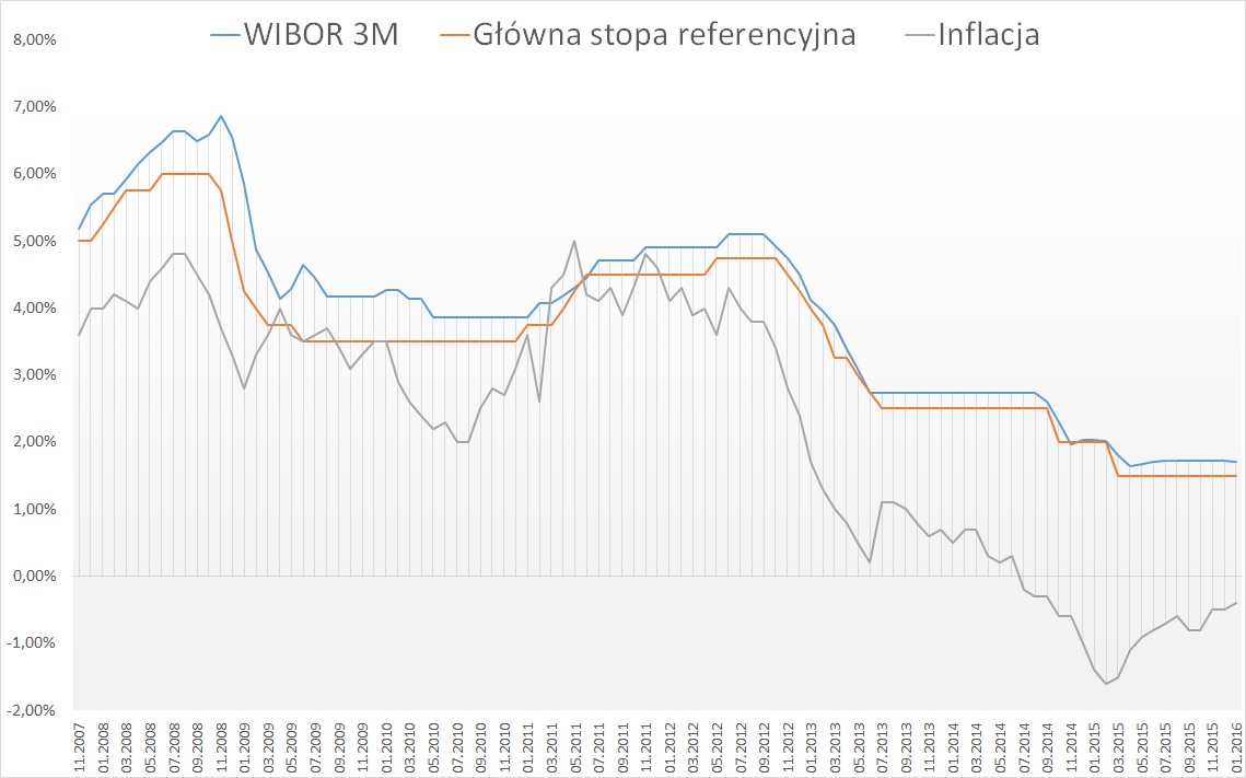 Stopa referencyjna / WIBOR 3m / Inflacja w Polsce
